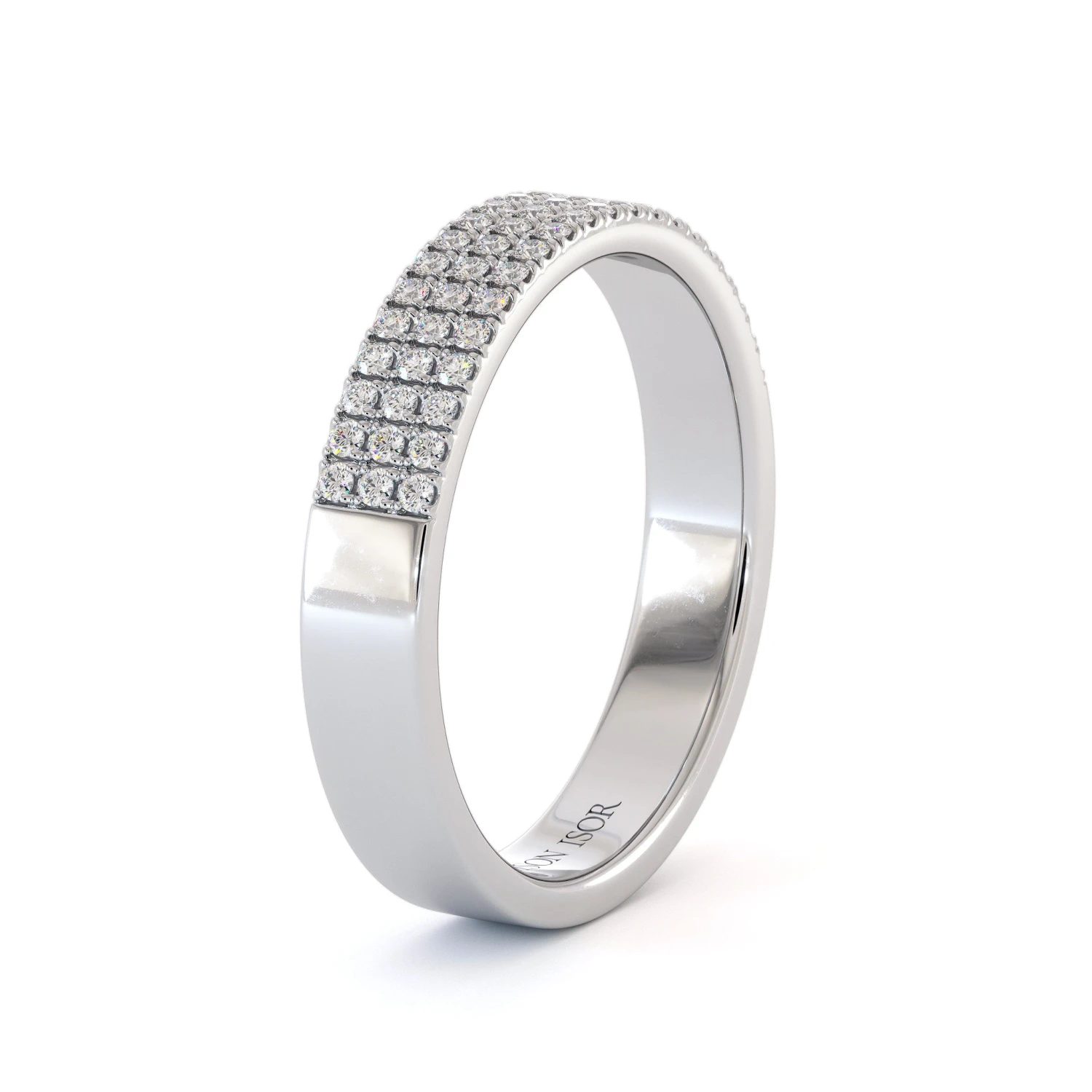 Alliance Anya en or 750/1000, sertie de diamants taille brillant pour un total d’environ 0,30 ct. Son design à quatre rangées offre un éclat structuré et moderne.
