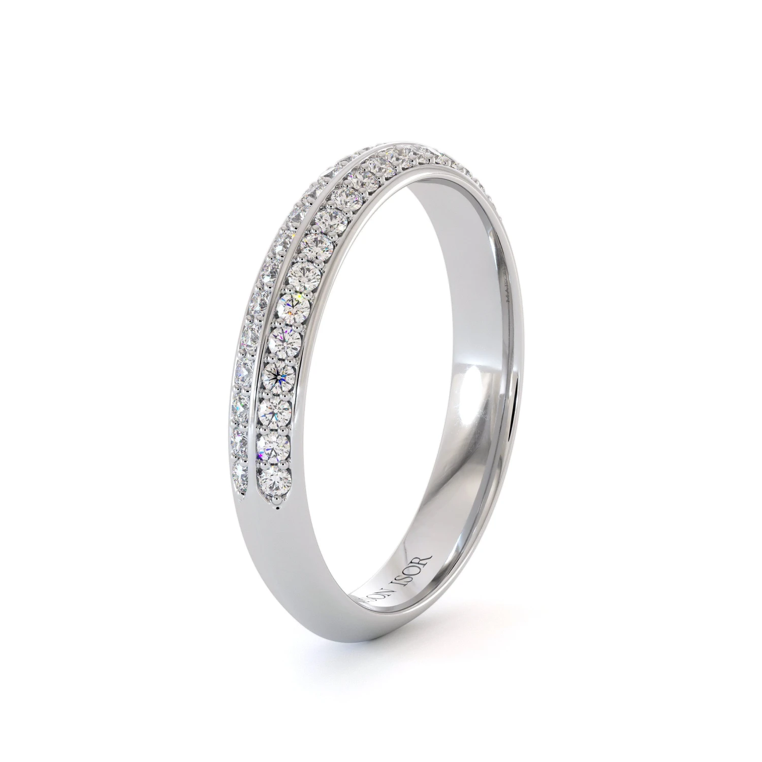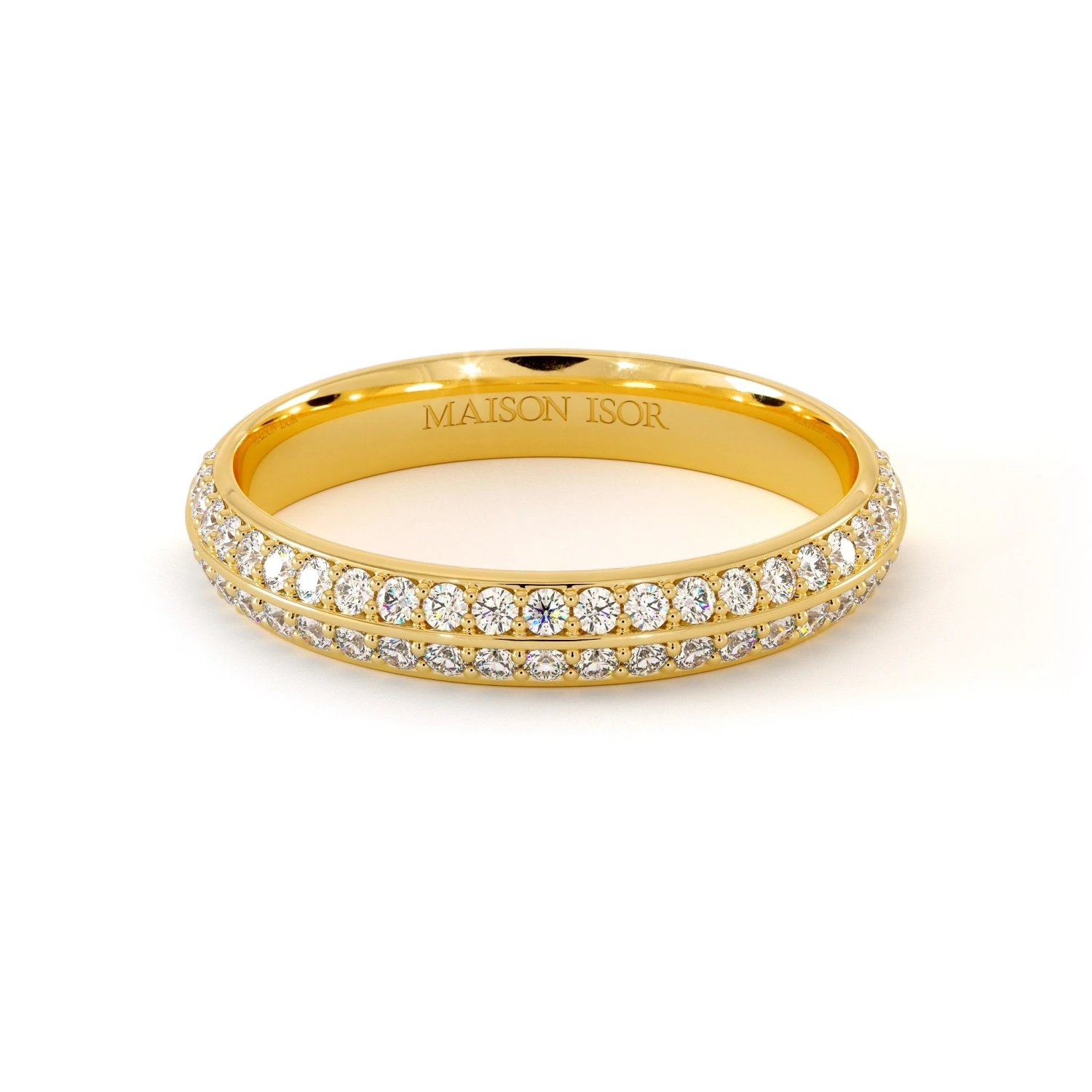 Alliance Aylin en or 750/1000, sertie de deux rangées de diamants taille brillant. Une silhouette élégante au raffinement intemporel. Poids diamant : 0,35 ct.