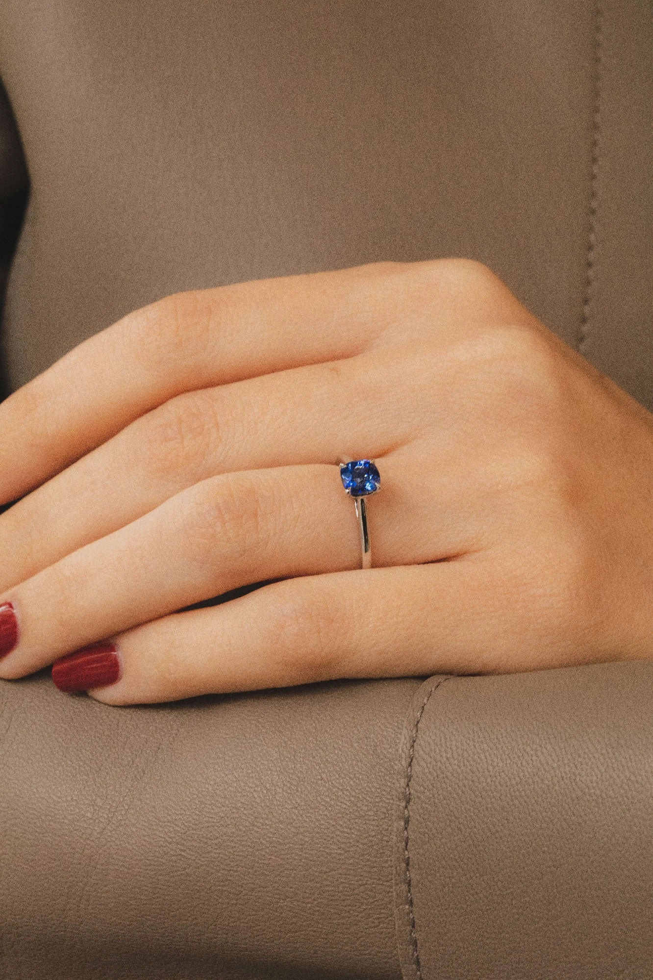 Ce solitaire en saphir et or blanc incarne l’élégance et la simplicité. Le saphir central est la pièce maîtresse de cette bague, captivant l’attention avec sa couleur intense et sa beauté naturelle. La monture en or blanc offre un contraste saisissant avec la pierre précieuse, mettant en valeur la profondeur et la luminosité du saphir. L’or blanc apporte une touche de modernité et de sophistication à cette bague intemporelle. La monture minimaliste permet au saphir de briller de tout son éclat, accentuant ainsi sa beauté pure et naturelle. La simplicité de ce solitaire met en avant la pierre précieuse, offrant une esthétique épurée et élégante.