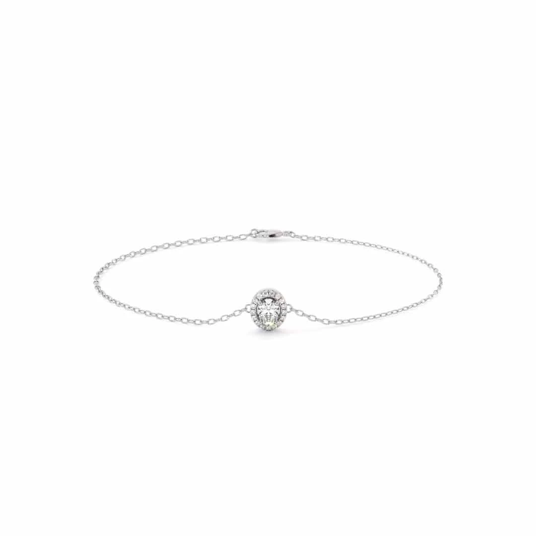 Ce somptueux bracelet ALISON en or 18 carats et son diamant de 0,15 à 0,30 carats est entouré d’un halo pour faire ressortir la beauté naturelle de la pierre. La pierre centrale taille ovale semble flotter sur le poignet et se déplace harmonieusement avec vous.