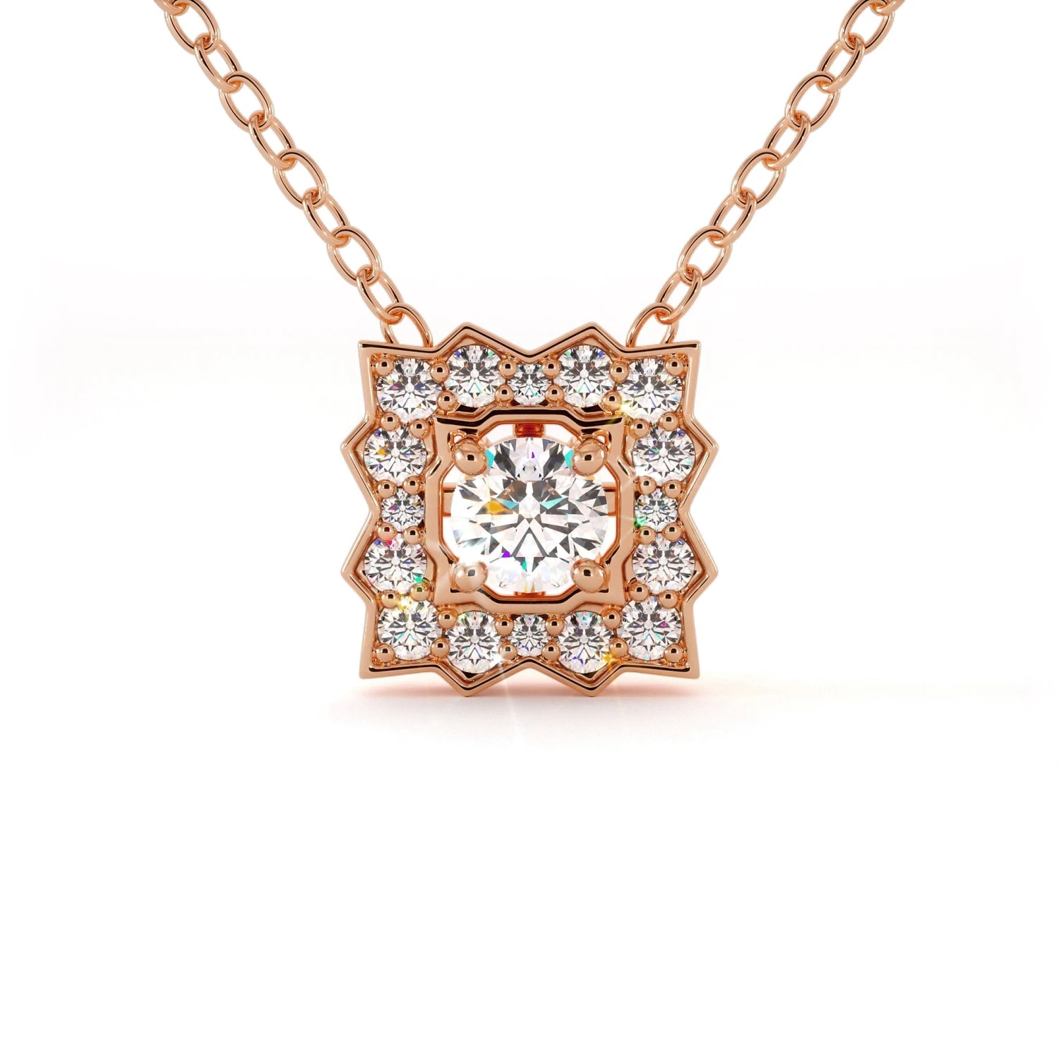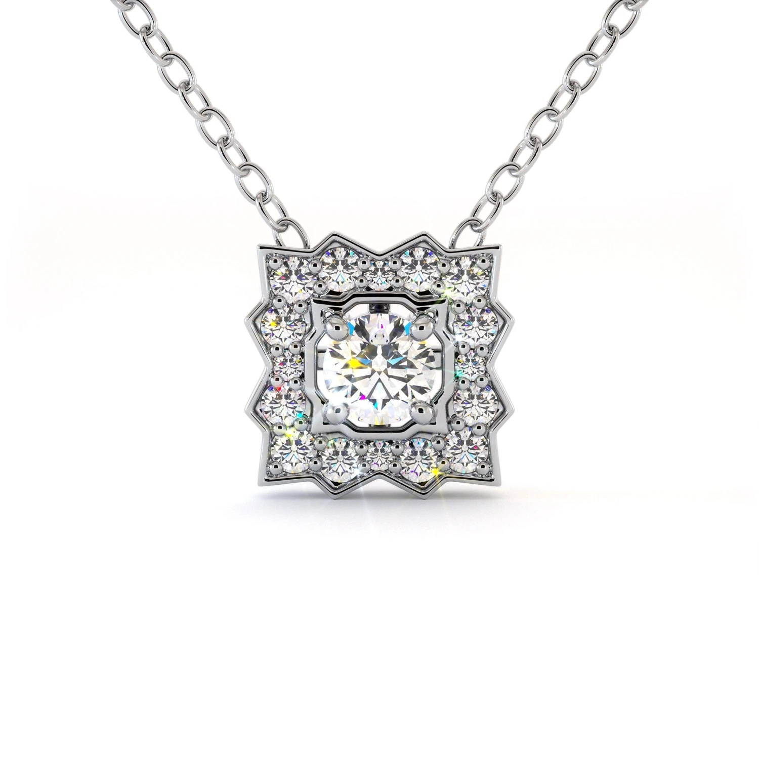 Le collier MARTA est une pièce exceptionnelle qui marie l’éclat pur d’un diamant central de 0.25 Carats à un halo scintillant évoquant une étoilé. La monture délicate ajoute une touche d’élégance, faisant de ce collier un bijou intemporel, un hommage à la grâce et à la sophistication.