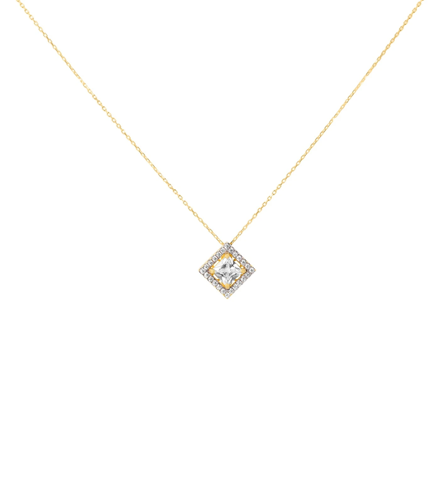 Orné d’une pierre taille princesse placé au centre du collier, le collier SAYURI en or 18 carats sera vous sublimer. Les pierres taille brillant qui accompagnent la pierre centrale renforcent le scintillement du bijou, pour un rendu des plus étincelants.