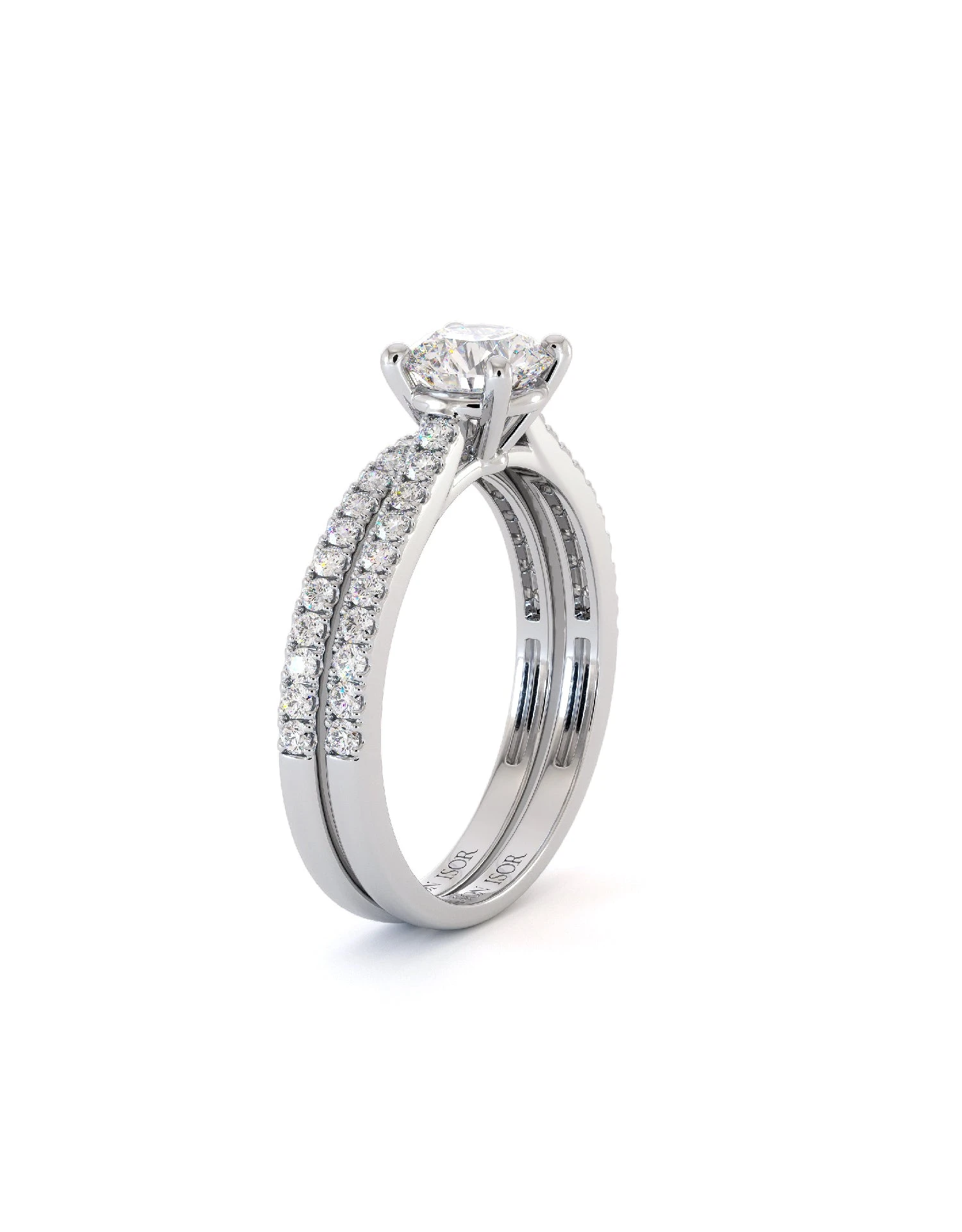 Avec son design épuré, le duo ELEA en or 18 carats est un ensemble de bijoux à la beauté intemporelle. La pierre centrale taille brillant du solitaire est délicatement montée sur un anneau de pierres scintillantes pour une finition élégante. L’ensemble est assortie d’une alliance aux courbes minimalistes pour sublimer le solitaire. Le duo existe en or jaune, or blanc et or rose.