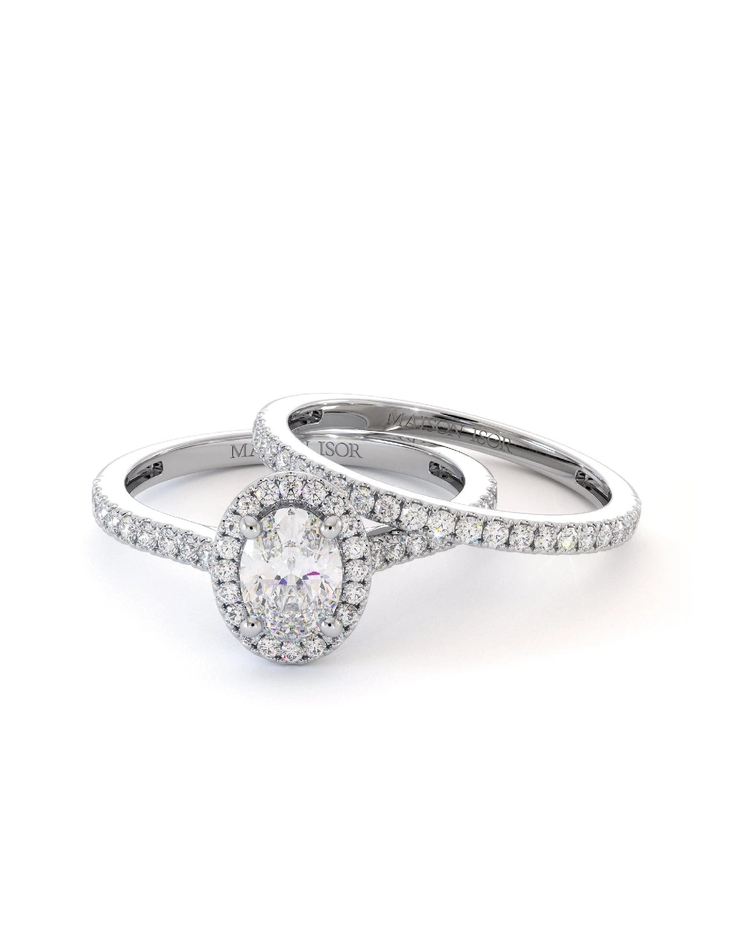 Le duo JUNE en or 18 carats est le choix de l’élégance et de l’intemporalité. La pierre de forme ovale sertie en 4 griffes associée à son halo de pierres en zirconium offre une brillance inégalée au solitaire. La monture pavée de multiples pierres souligne avec éclat la beauté du solitaire. Le modèle est disponible en or blanc, or jaune et or rose.