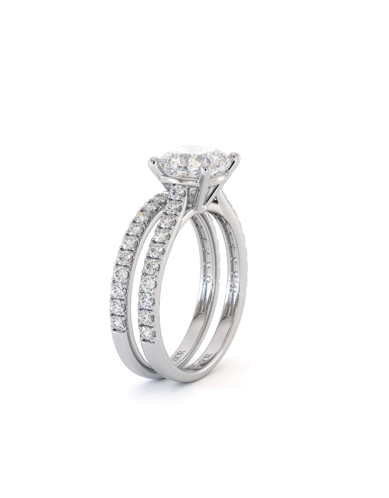D’une élégance incontesté le duo NOSY en or 18 Carats saura se distinguer. Sertie d’une pierre centrale de taille coussin, ce duo de bagues fiançailles et mariage forme une harmonie éblouissante de raffinement grâce à son pavage de pierres en zirconium.