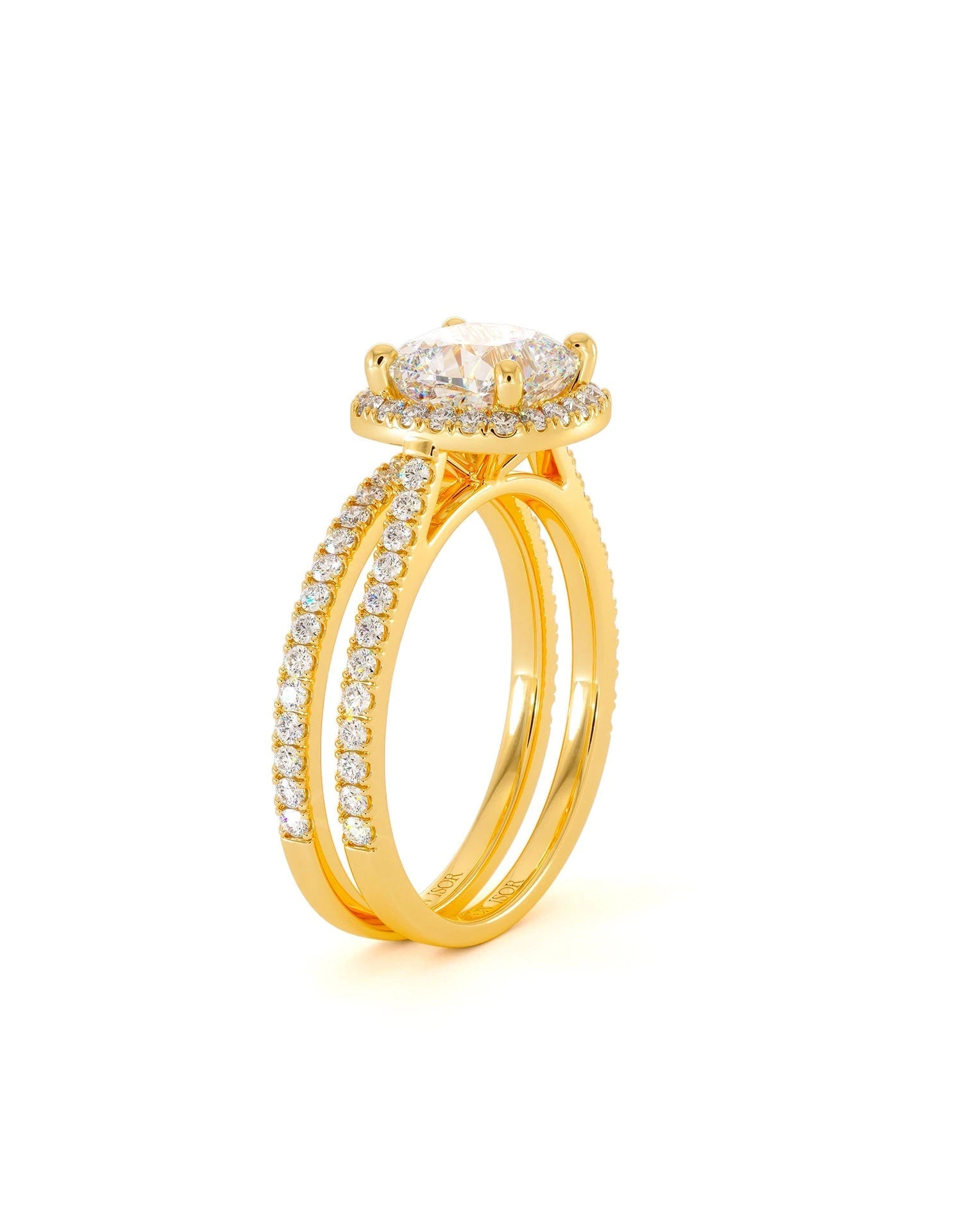 Le duo PEARL en or 18 carats vous séduira par son solitaire orné d’un oxyde de zirconium de forme coussin. Son design à la finition perlée lui apporte brillance et caractère. Son alliance est délicate par son corps de bague fin qui accentue son raffinement. Le duo PEARL existe en or jaune, or blanc et en or rose.