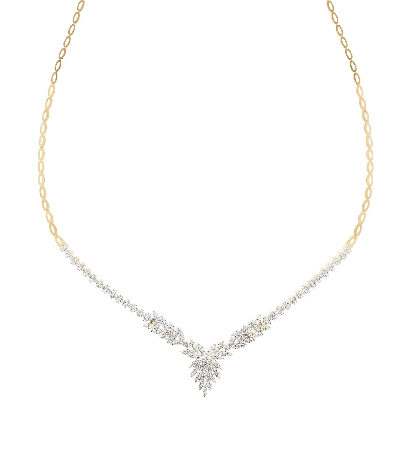 Harmonieusement disposées, les pierres de la parure IXORA en or 18 carats semblent flotter contre la peau. Gracieuse, la parure est composée de 4 pièces ; un collier, une gourmette, une bague et une paire de boucle d’oreille d’une incomparable brillance.