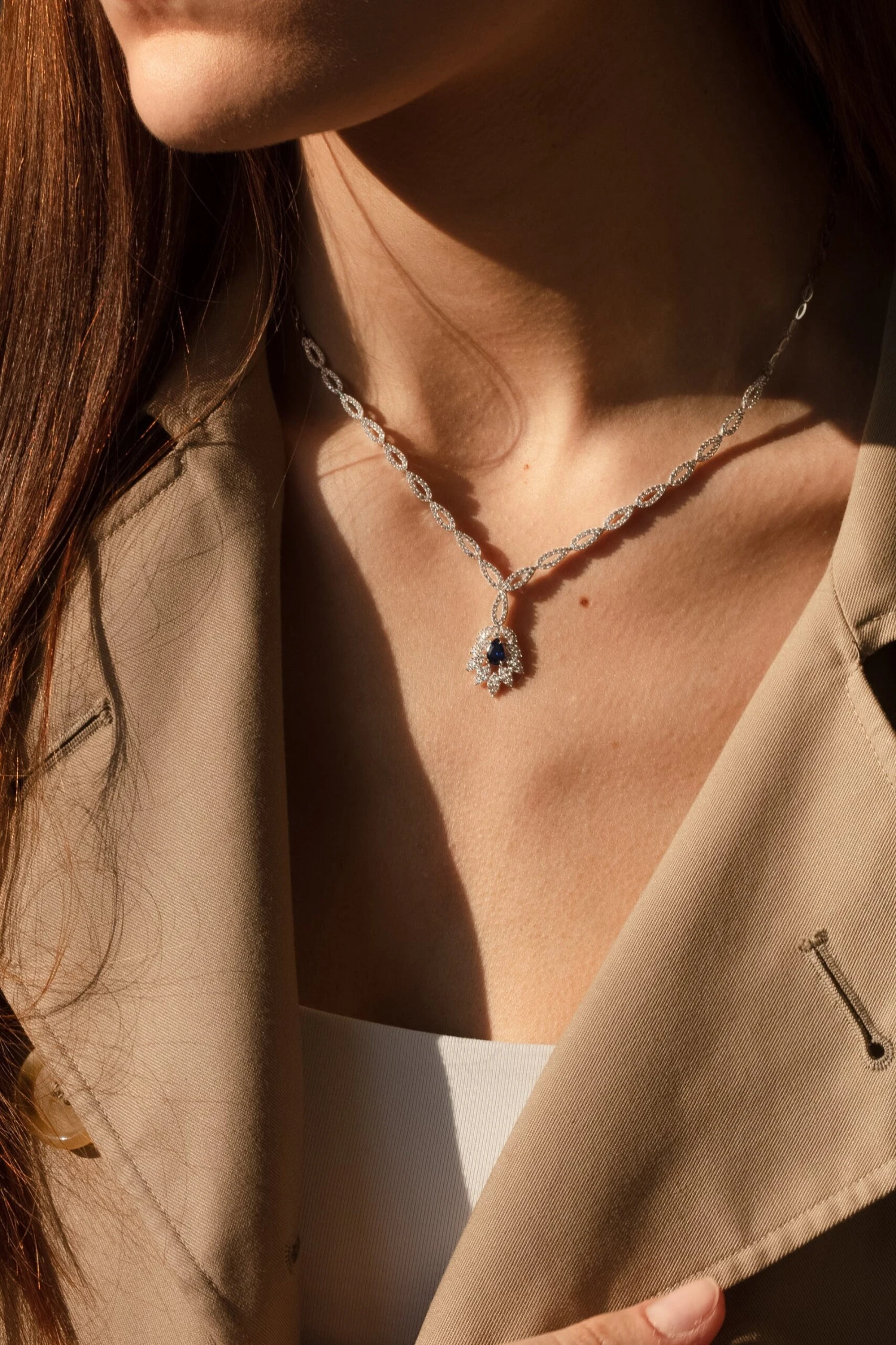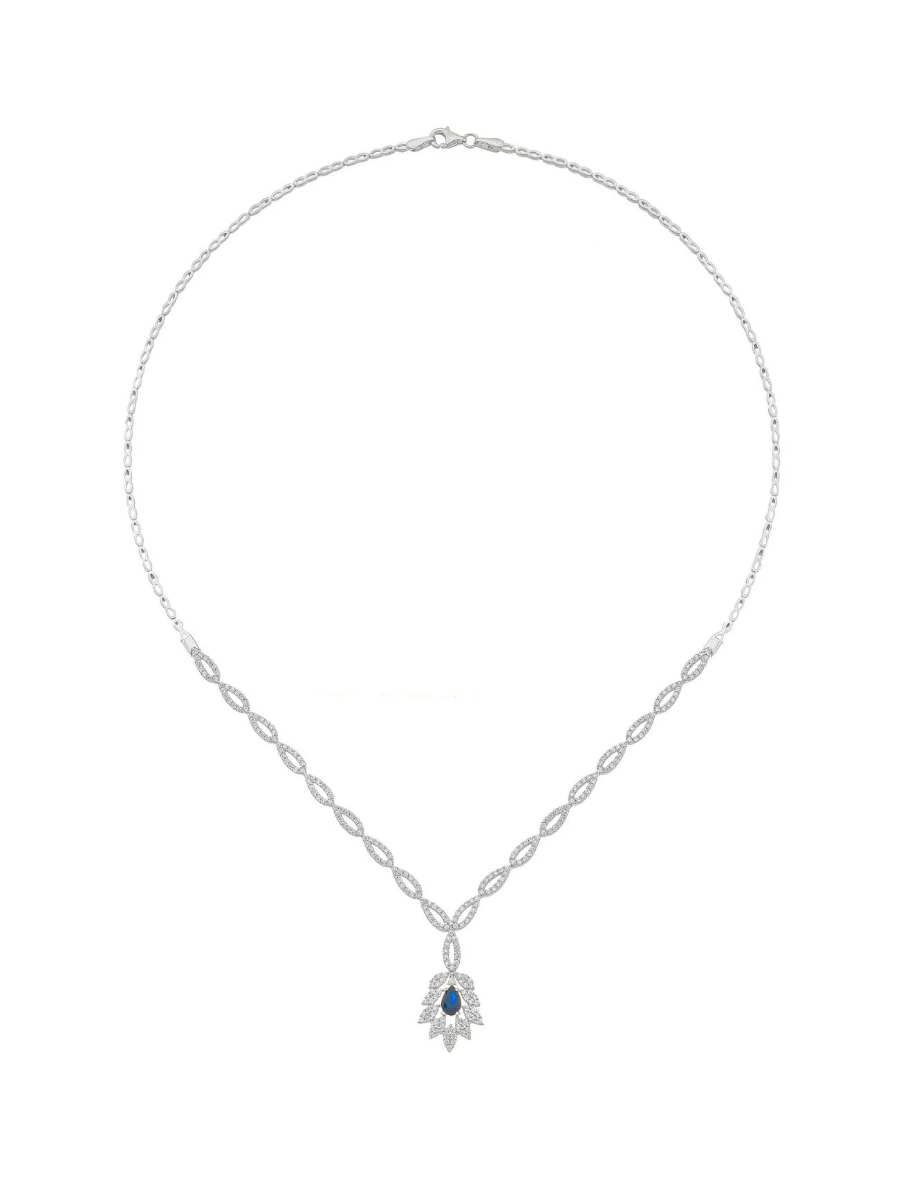 Cette somptueuse parure en or 18 carats vous rendra irrésistible. Sa pièce maitresse, un collier à l’éclat inimitable révélant une poire en oxyde bleu entouré d’un halo en oxyde de zirconium formant une fleure. Une paire de boucle d’oreille et une gourmette viennent compléter l’ensemble. Un cadeau inspiré pour un être chère.