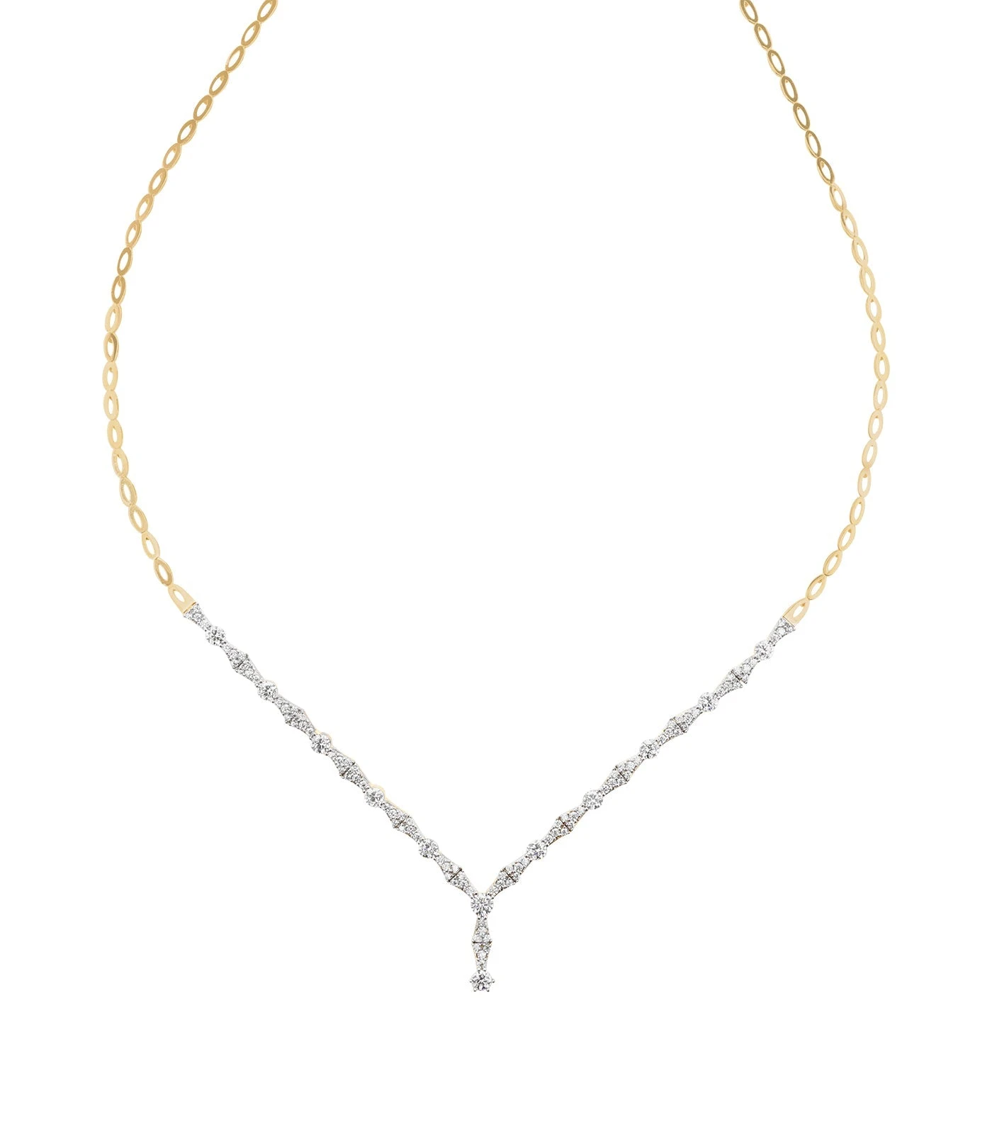 Une branche de bambou souple et solide se métamorphose en une parure en or 18 carats. LIANA se compose d’un magnifique collier orné de pierre en forme de brillant ainsi que d’une gourmette, d’une bague, et d’une paire de boucle d’oreille.