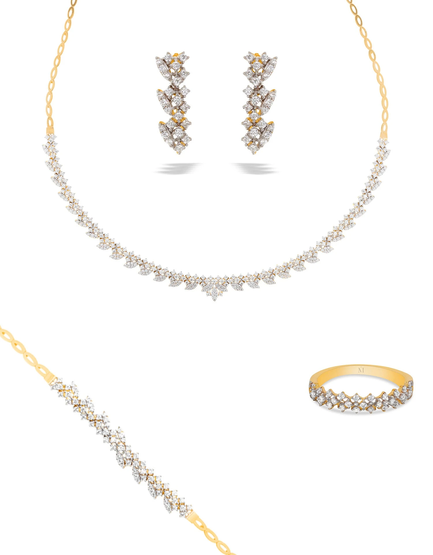 SKU: BWFPC 7705882624248 Categories: Fiançailles & Mariage, Parures Mariée Tags: Or Jaune, Oxyde de Zirconium, Parure 4 pièces