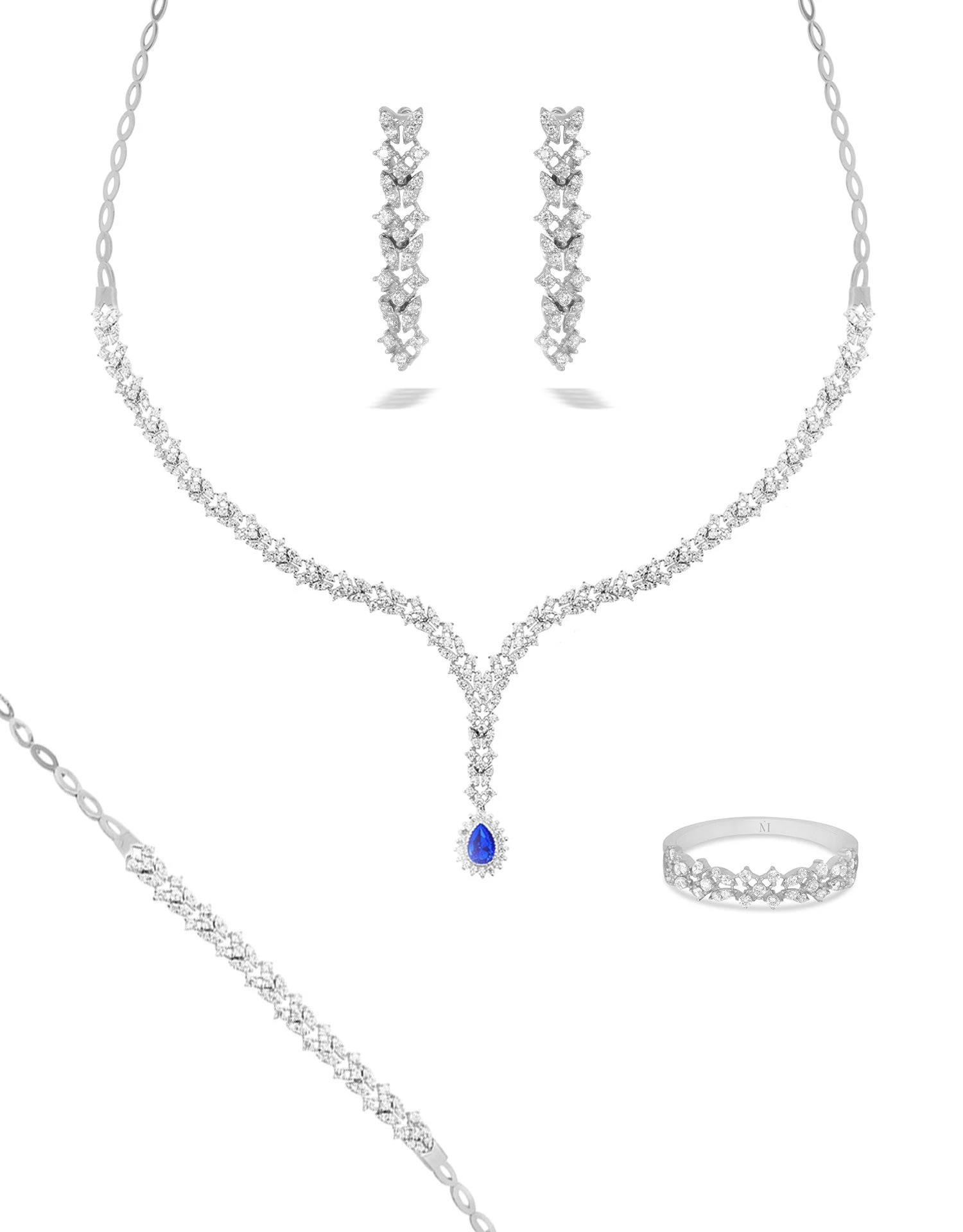 SKU: BWFPC 7705962184952 Categories: Fiançailles & Mariage, Parures Mariée Tags: Or Blanc, Oxyde bleu saphir, Parure 4 pièces