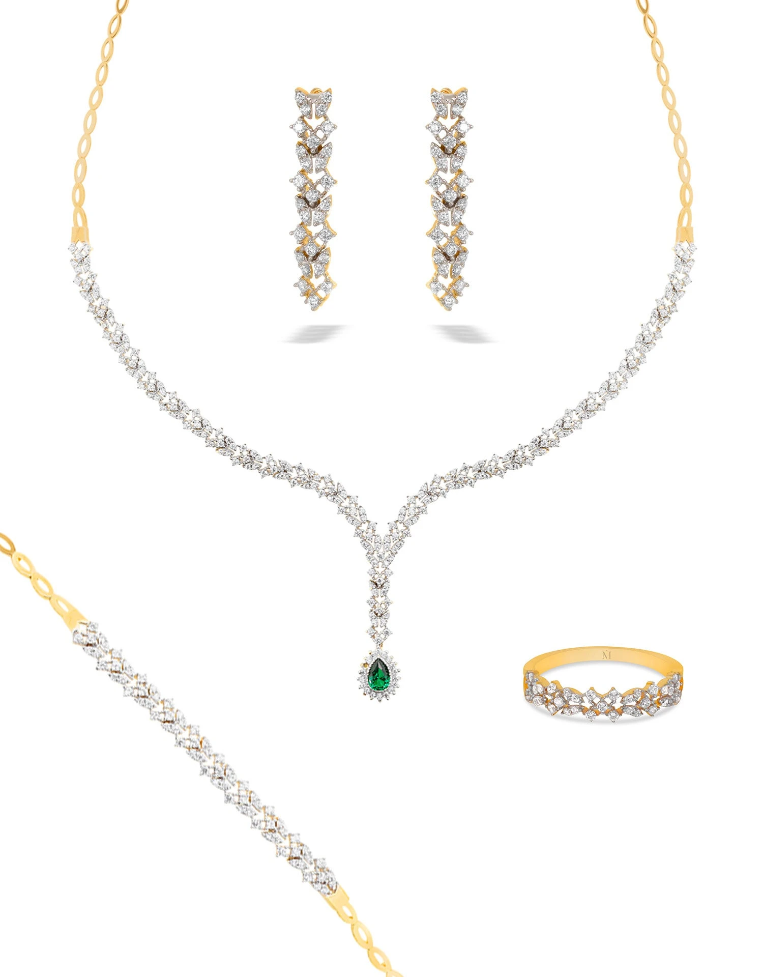 Cette somptueuse parure en or 18 carats vous rendra irrésistible. Sa pièce maitresse, un collier à l’éclat inimitable révélant une poire en oxyde bleue entouré d’un halo en oxyde de zirconium. Une paire de boucle d’oreille, une gourmette et une bague viennent compléter l’ensemble. Un cadeau inspiré pour un être chère.
