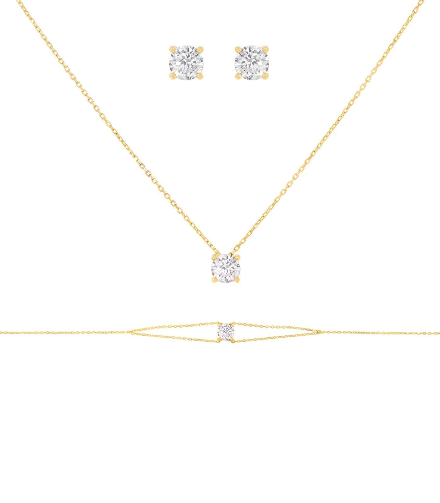 Ce délicat mini set RUBY en or jaune 18 carats adopte un look minimaliste et chic. Composé d’un collier, d’une paire de boucle d’oreille et d’une gourmette, ce mini set donne un résultat brillant remarquable et vous rendra irrésistible !