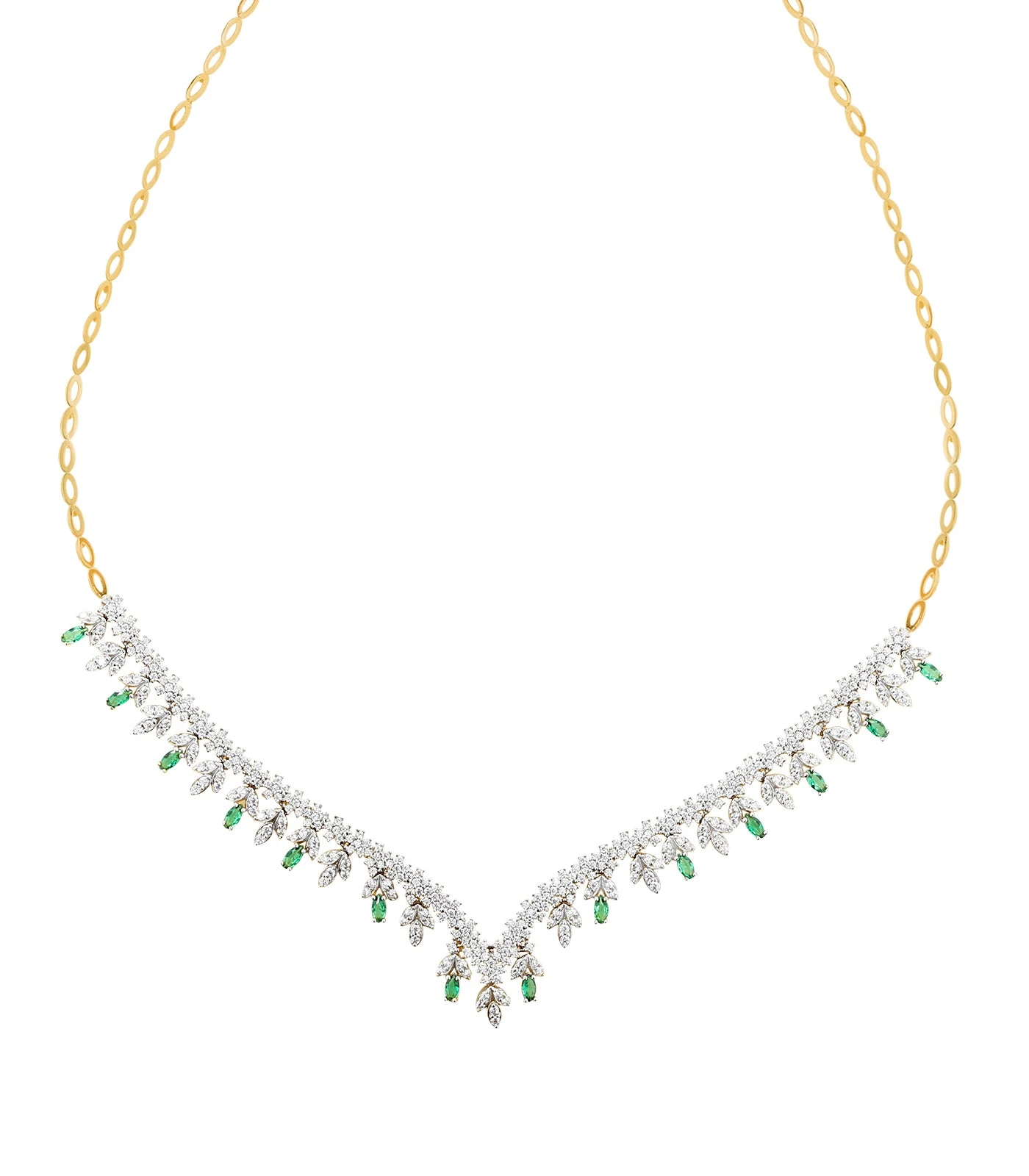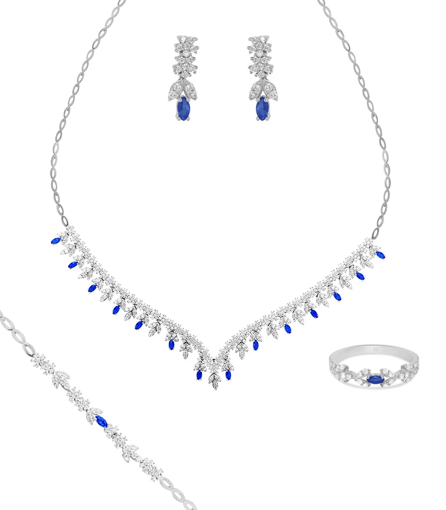 Somptueuse la parure en or 18 carats ZINNIA vous fera voyager à travers le temps. S’inspirant de la fleur de lys, le design de cette parure unique affiche un éclat infini. Sa pièce maitresse un collier orné de magnifiques marquises en oxyde vert et de brillant formant les pétales de fleurs. Une gourmette, une bague et une paire de boucle d’oreille feront écho afin de complété cette parure majestueuse.
