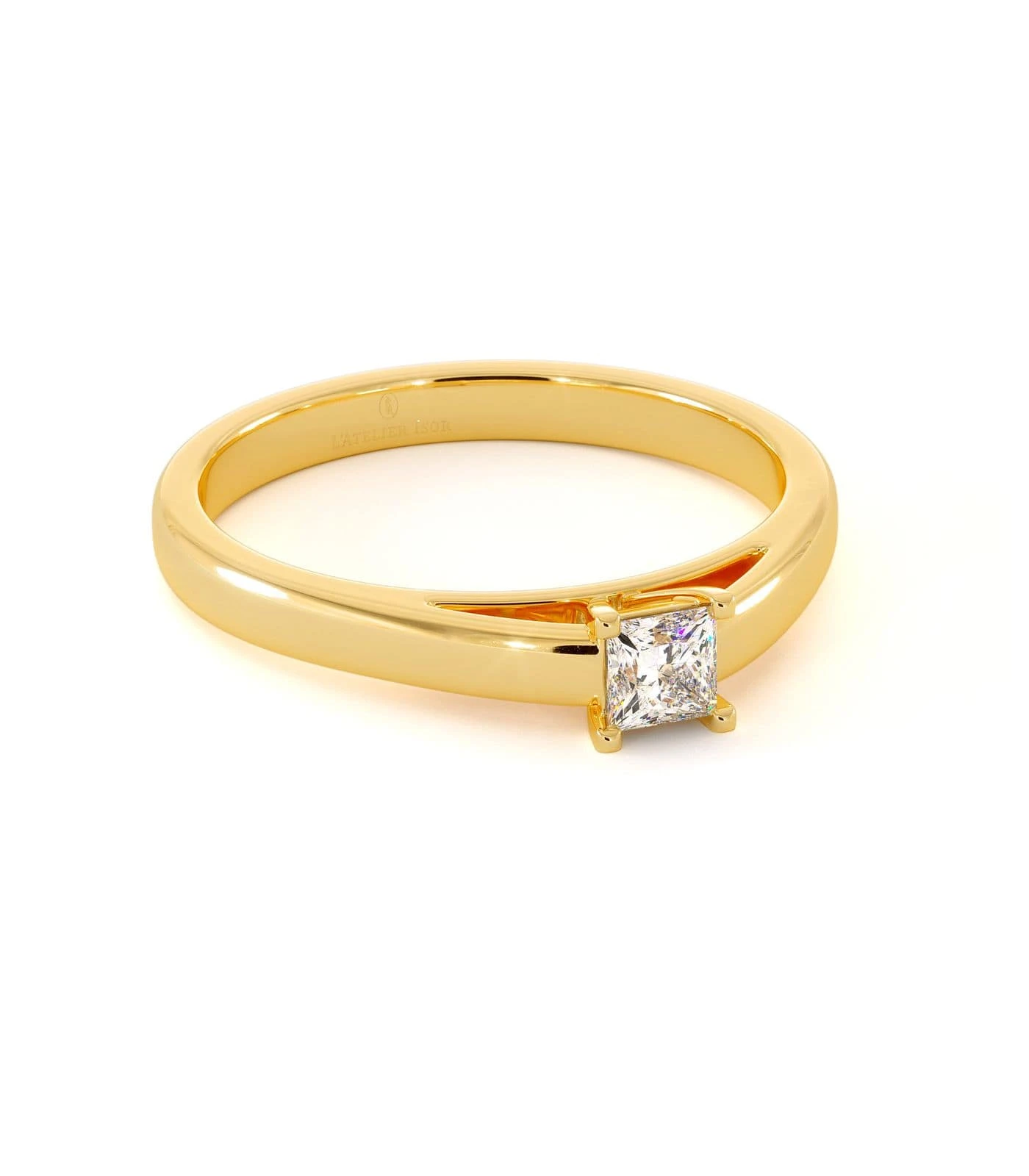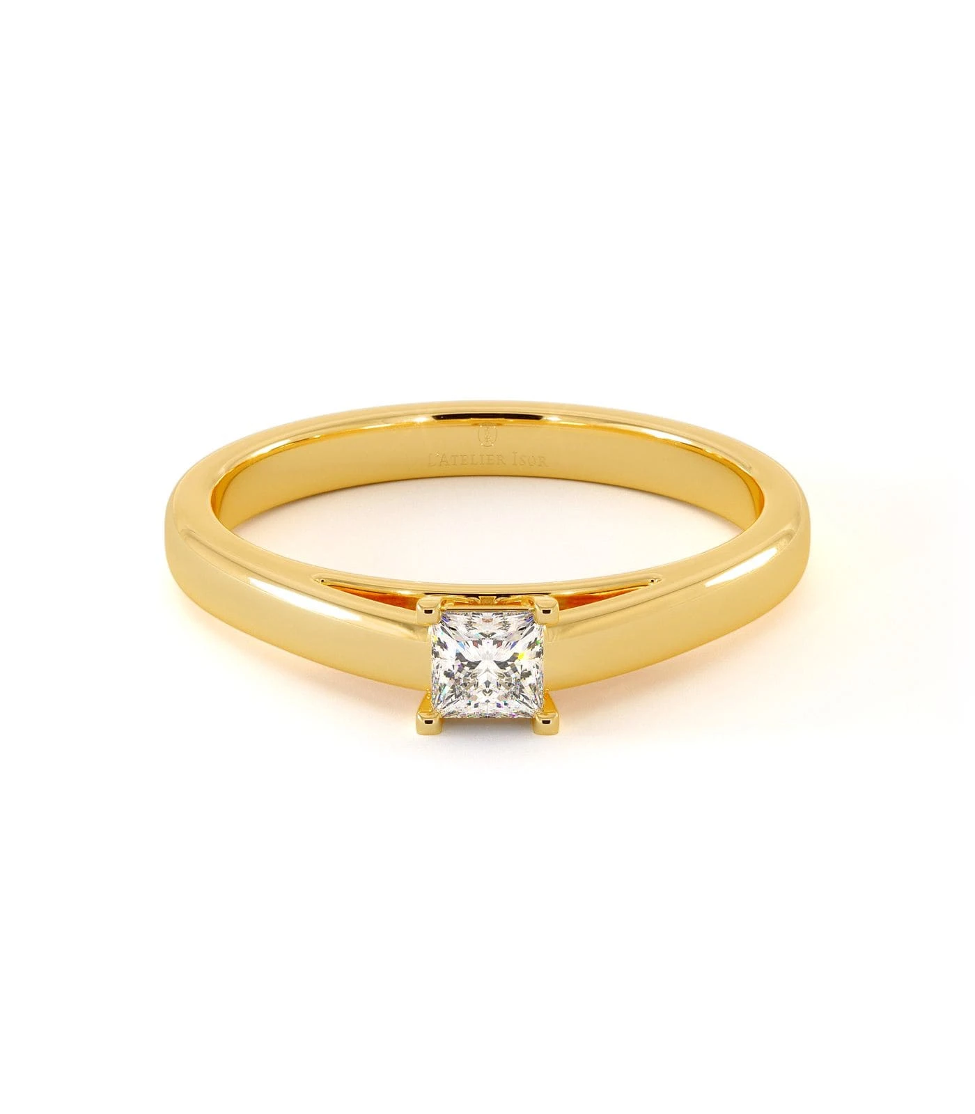 À l’allure à la fois classique et moderne, le solitaire AMLA en or 18 carats se compose d’un scintillant diamant taille princesse destiné à sublimer le design épuré de cette bague intemporelle et féminine. La fabuleuse simplicité et la finesse d’exécution exprimée dans ce bijou complètera le style de toute femme sensible et rêveuse. La bague de fiançailles AMLA est idéale pour dire oui à l’homme de votre vie. Un bijou singulier qui peut aussi bien se porter seul que marié à l’une de nos plus belles alliances. Il peut parfaitement être associé à la magnifique alliance DAPHNE pour sublimer votre main.
