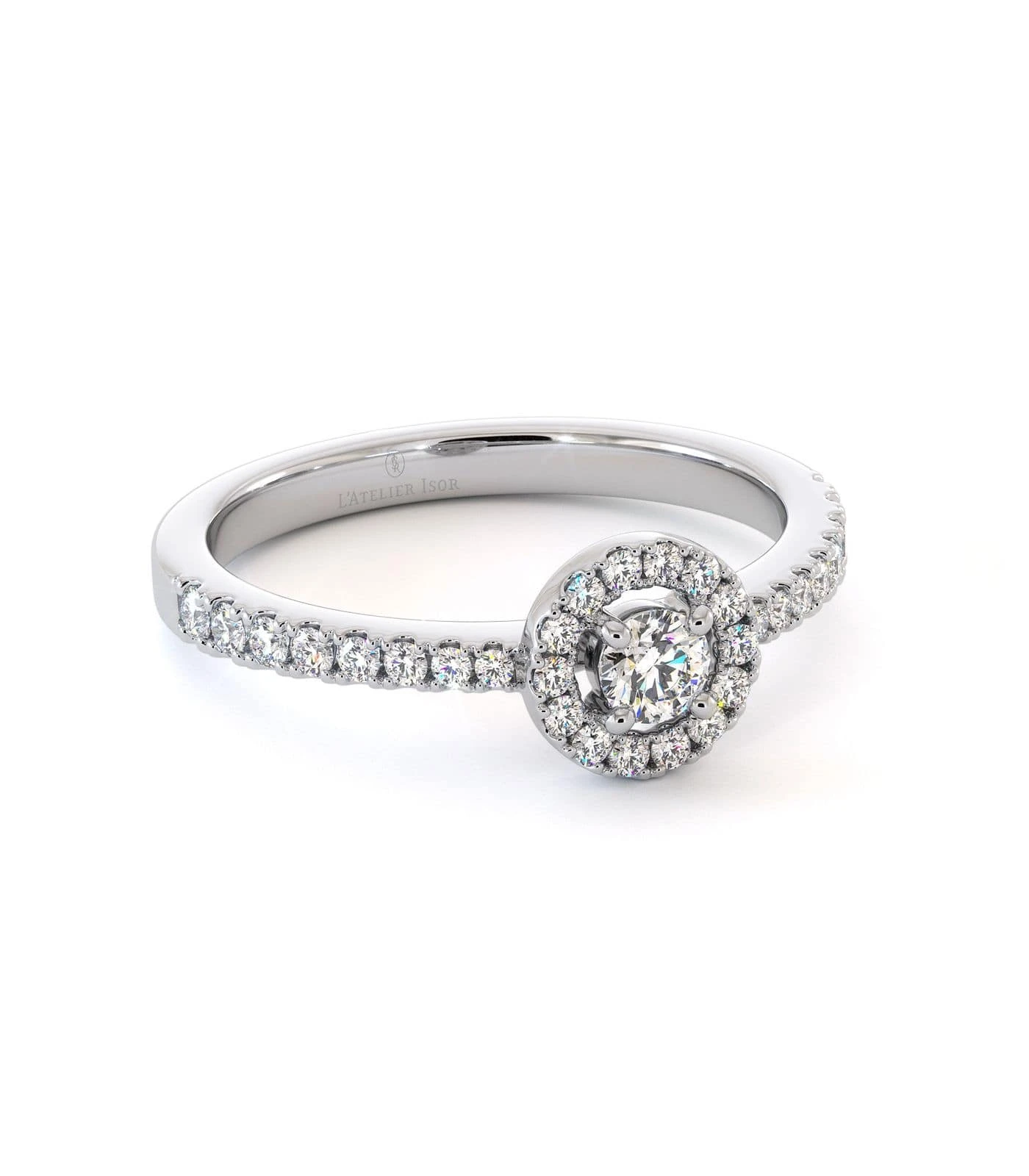 Délicate et raffinée, la bague de fiançailles BLUE MOON en or 18 carats, symbole d’amour et de passion, promet une lueur flamboyante à votre bijou. Grâce à son diamant central scintillant taille brillant, son halo de petits diamants et son pavage délicat le long de son anneau, ce solitaire vous fera rêver au premier regard. Le solitaire BLUE MOON irradie la féminité et la délicatesse de votre main. Elle s’associe parfaitement en termes de style et de finesse avec l’alliance MAKIAN ou une alliance créée sur-mesure pour épouser ce bijou.