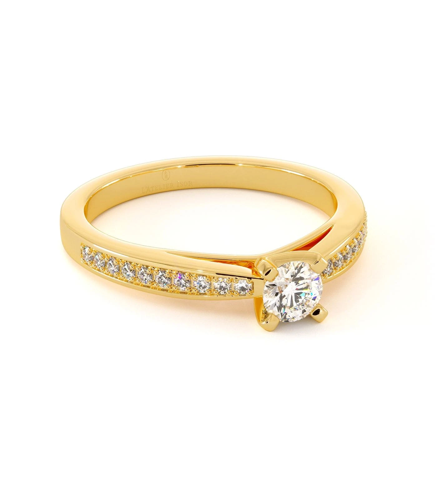 Alliant charme et délicatesse, le magnifique solitaire CAPRIA saura certainement vous séduire. En or 18 carats serti d’un scintillant diamant central de forme ronde. Une pierre précieuse accompagnée d’un gracieux pavage de petits diamants brillants épousant parfaitement le long de son corps de bague, lui offrant un horizon radieux. Le solitaire CAPRIA se distingue par son allure luxueuse et son style sophistiqué qui sublimera divinement la main d’une femme délicate et glamour. Cette bague de fiançailles s’associe à merveille avec l’alliance PALMYRE, une bague de mariage qui se distingue par sa finesse. Vous pouvez également vous laisser tenter par notre service de création sur-mesure qui vous aidera à exprimer vos envies.