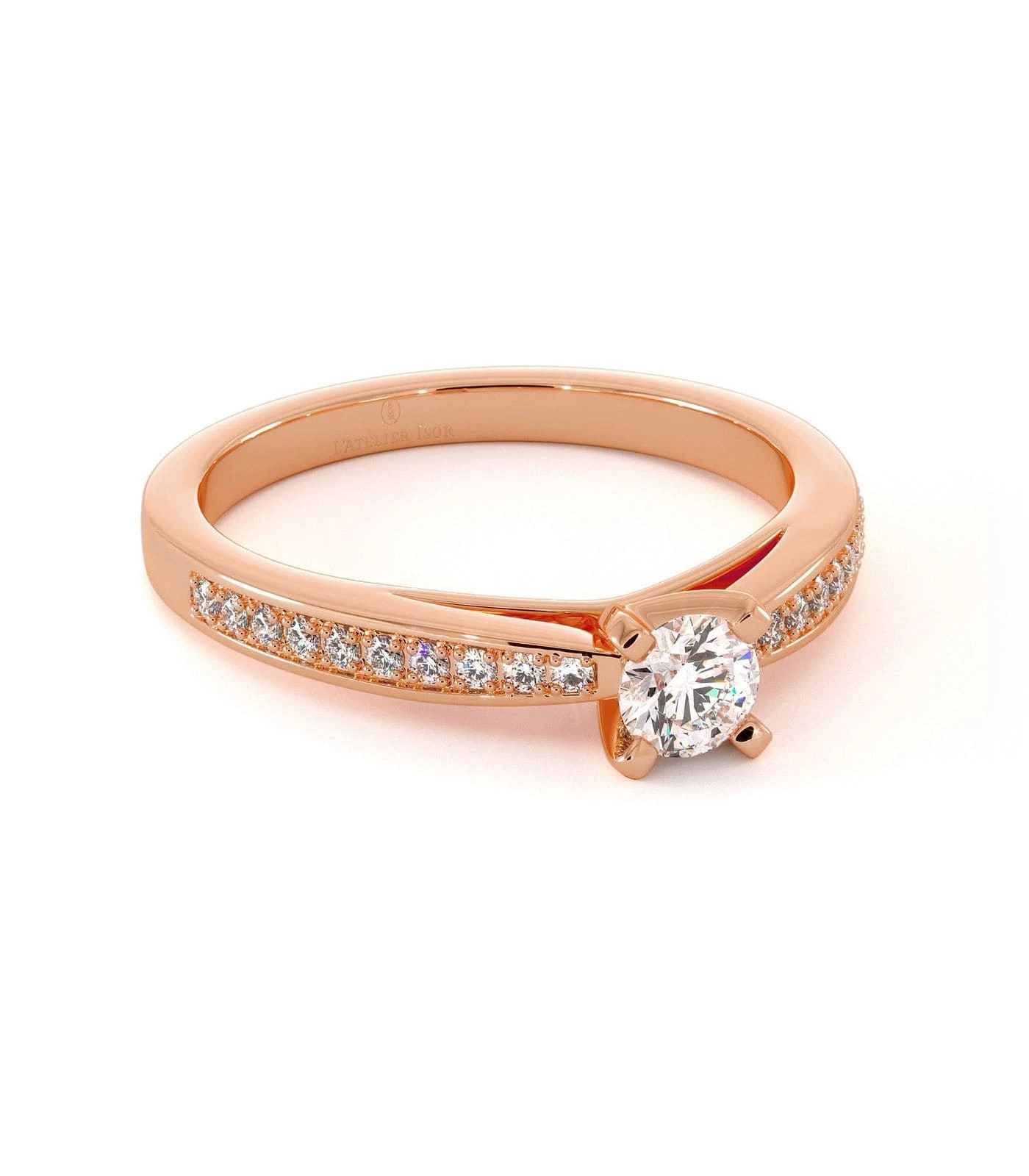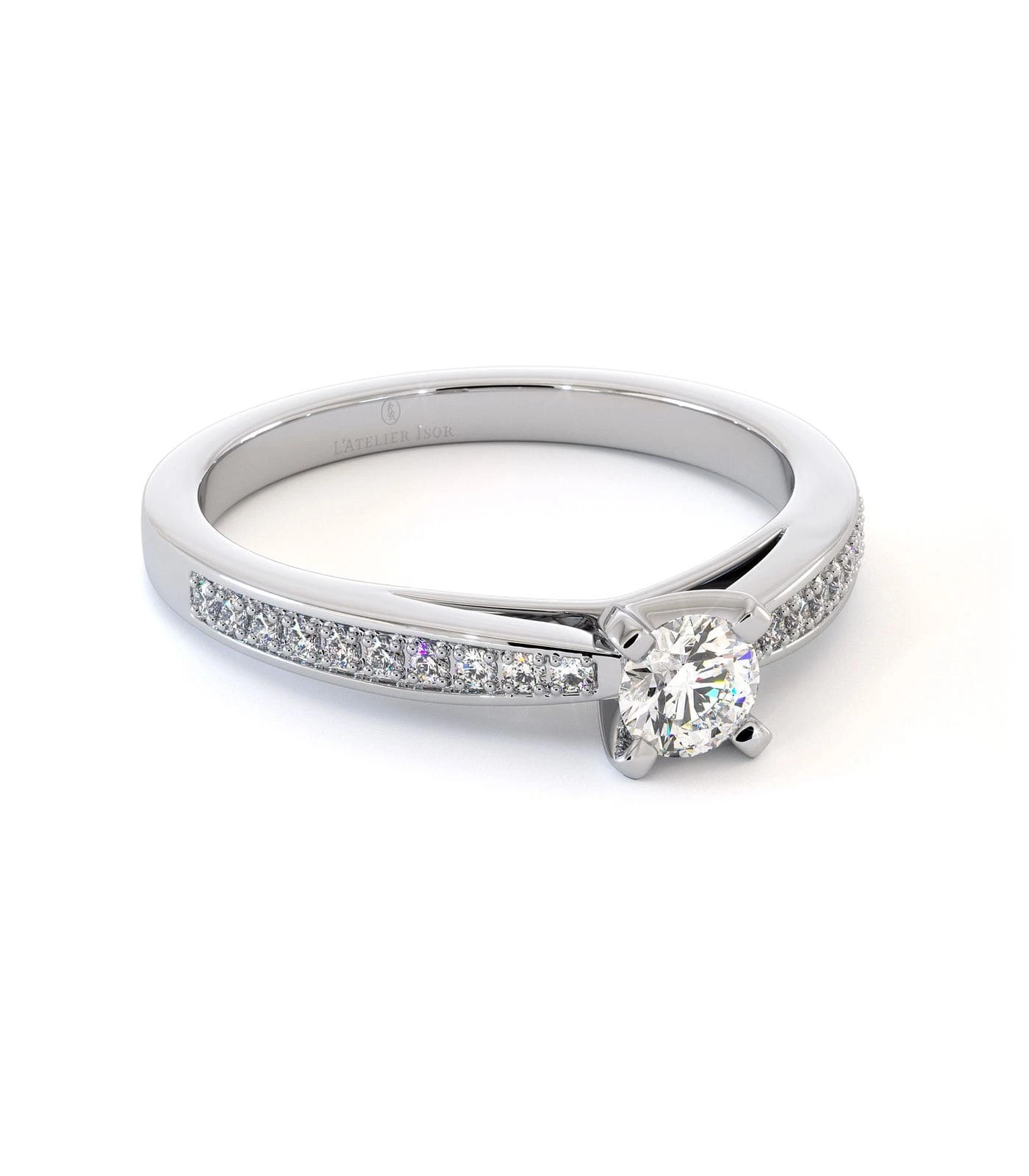 Alliant charme et délicatesse, le magnifique solitaire CAPRIA saura certainement vous séduire. En or 18 carats serti d’un scintillant diamant central de forme ronde. Une pierre précieuse accompagnée d’un gracieux pavage de petits diamants brillants épousant parfaitement le long de son corps de bague, lui offrant un horizon radieux. Le solitaire CAPRIA se distingue par son allure luxueuse et son style sophistiqué qui sublimera divinement la main d’une femme délicate et glamour. Cette bague de fiançailles s’associe à merveille avec l’alliance PALMYRE, une bague de mariage qui se distingue par sa finesse. Vous pouvez également vous laisser tenter par notre service de création sur-mesure qui vous aidera à exprimer vos envies.