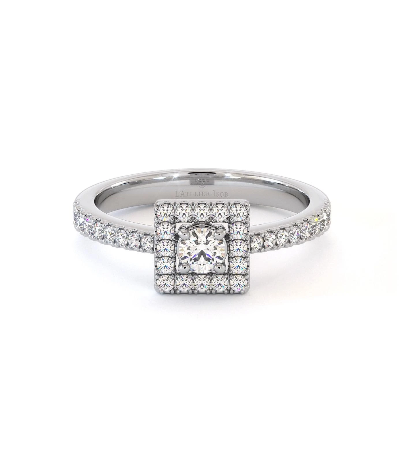 Une déclaration d’amour ne pourrait mieux se dessiner que par l’allure miroitante du solitaire FIVE. Composé d’or 18 carats, la bague est sertie d’un diamant central étincelant de lumières de taille brillant de 0.12 carats. Une pierre précieuse accompagnée d’un halo scintillant venant sublimer la silhouette géométrique du bijou. La bague de fiançailles FIVE au style à la fois imposant et sophistiqué comblera toutes les femmes glamour et créatives. Le modèle FIVE s’accorde merveilleusement bien avec l’alliance MAKIAN, la bague de mariage par excellence. Pour encore plus de perfection, vous pouvez opter pour une création unique sur-mesure pour compléter votre amour le jour de votre mariage.