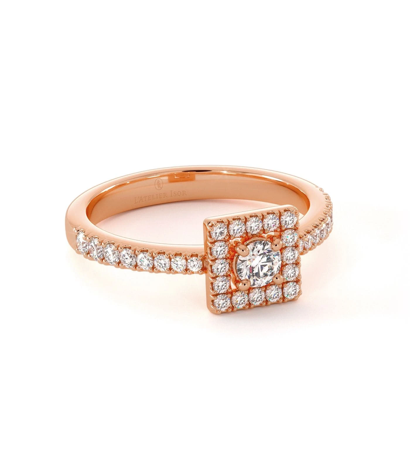 Une déclaration d’amour ne pourrait mieux se dessiner que par l’allure miroitante du solitaire FIVE. Composé d’or 18 carats, la bague est sertie d’un diamant central étincelant de lumières de taille brillant de 0.12 carats. Une pierre précieuse accompagnée d’un halo scintillant venant sublimer la silhouette géométrique du bijou. La bague de fiançailles FIVE au style à la fois imposant et sophistiqué comblera toutes les femmes glamour et créatives. Le modèle FIVE s’accorde merveilleusement bien avec l’alliance MAKIAN, la bague de mariage par excellence. Pour encore plus de perfection, vous pouvez opter pour une création unique sur-mesure pour compléter votre amour le jour de votre mariage.