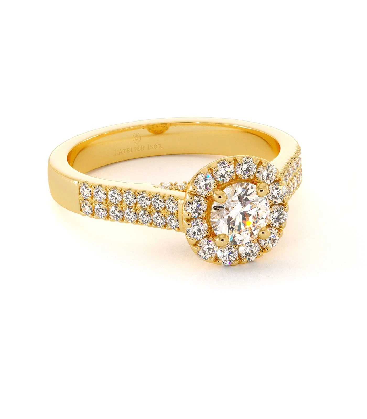 Le serment d’une brillance éternelle vous liera d’amour au solitaire KERALA composé d’or 18 carats et d’un diamant central de taille brillant. Une somptueuse bague de fiançailles pavée d’un halo venant généreusement entourer la pierre centrale. Son corps de bague est parsemé de deux rangées de brillants déposés minutieusement le long de son anneau venant sublimer le charme ravageur du solitaire. La bague de fiançailles KERALA, par son style sophistiqué et classique plaira assurément aux femmes affirmées et audacieuses à la recherche de bijoux d’exception. Le solitaire KERALA est réalisable avec un diamant de 0.50 à 0.70 carats.