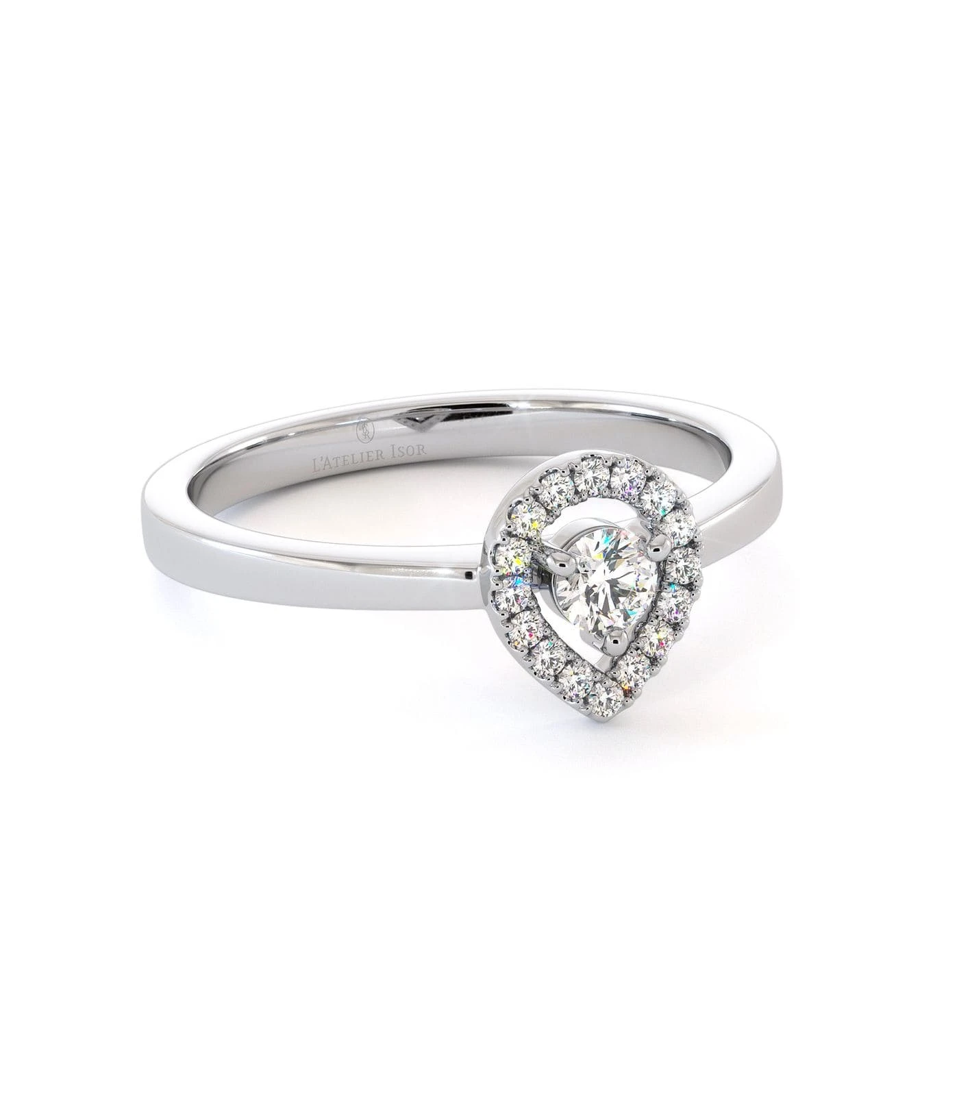 Le solitaire PANAREA et sa monture composée d’or 18 carats, met en scène un diamant central 0,12 carats serti trois griffes et accompagné d’un halo en forme de poire en diamants. La bague de fiançailles PANAREA se caractérise par sa finesse et sa délicatesse. Le modèle PANAREA se marie gracieusement avec l’alliance PALMYRE, une alliance fine et élégante. Vous pouvez également concrétiser la bague de mariage de vos rêves en optant pour notre service de création sur-mesure.