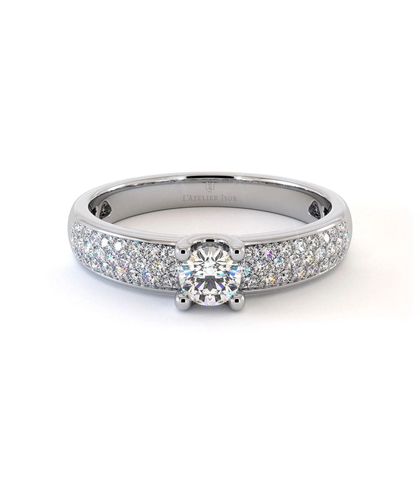 Le solitaire VELASQUEZ en or 18 carats est une création parsemée de diamants 0,35 carats qui révèle la brillance de son diamant central 0,25 carats taille brillant. Le magnifique solitaire VELASQUEZ est le résultat d’un travail minutieux de pavage en diamants éclatant. Bien qu’elle se suffise à elle-même, cette bague peut être mariée à une alliance ou une création sur-mesure.